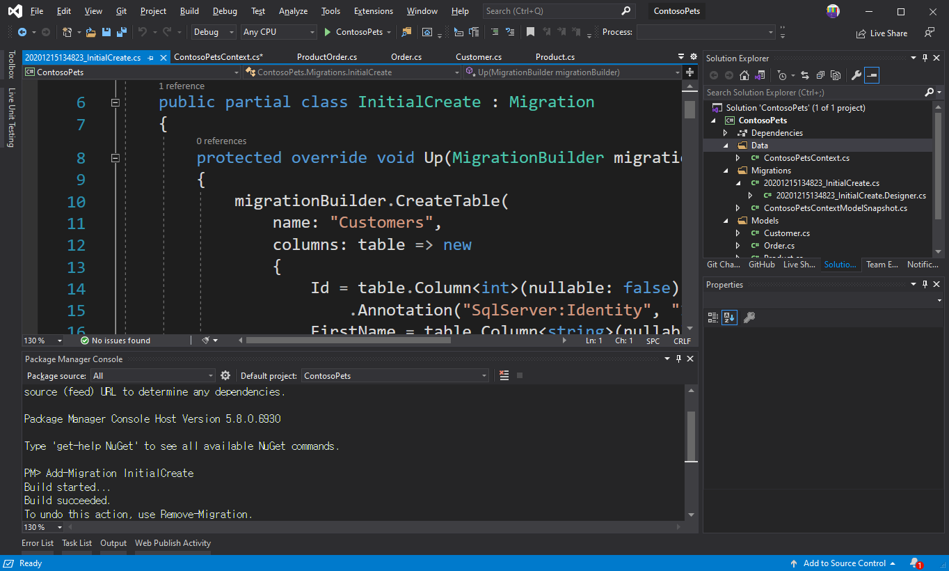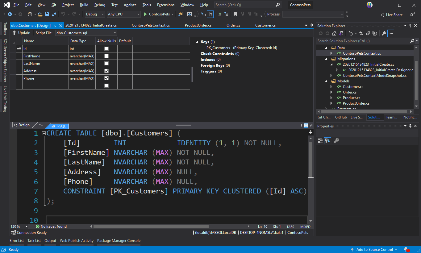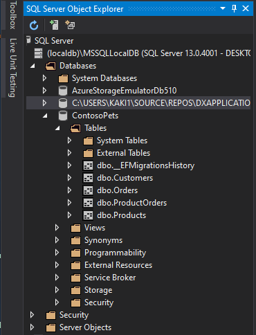 optionsBuilder.UseSqlServer("Data Source=(localdb)\\MSSQLLocalDB;Initial Catalog=ContosoPets;Integrated Security=true");