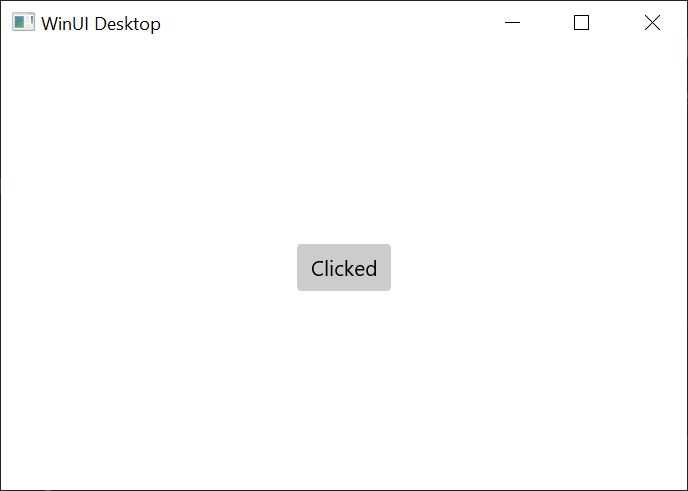 매우 간단한 앱이지만 여기서부터 발전 할 수 있습니다. 버튼의 텍스트를 "Clicked"로 변경하는 대신 이것이 Win32 앱임을 증명해 보겠습니다. 이 창의 HWND에 직접 user32.dll 메서드를 호출 해 보겠습니다.