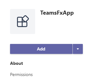 시작하기 위해 필요한 설정은 여기까지이므로 다음 단계는 프로그램을 실행하는 것입니다. 툴바에서 [디버그 시작] 단추를 클릭하거나 Debug > Start Debugging 메뉴 옵션을 사용하는 것만큼이나 쉽습니다. Visual Studio는 브라우저에서 팀을 시작하고 앱을 추가합니다. [추가] 단추를 눌러 응용프로그램이 팀별로 실행 중인지 확인합니다.