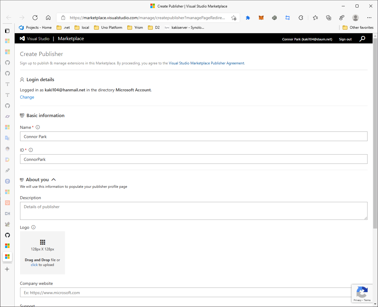 처음 만들려고 하니 Publisher 정보를 먼저 입력해야 하네요