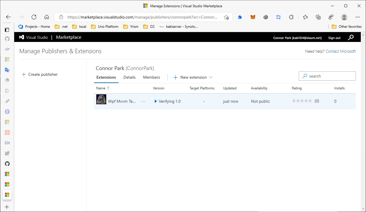 등록 요청 중인 Extension 목록이 출력됩니다. 승인이 완료되면 Visual Studio Marketplace에서 검색해서 다운로드 받아서 설치할 수 있습니다.