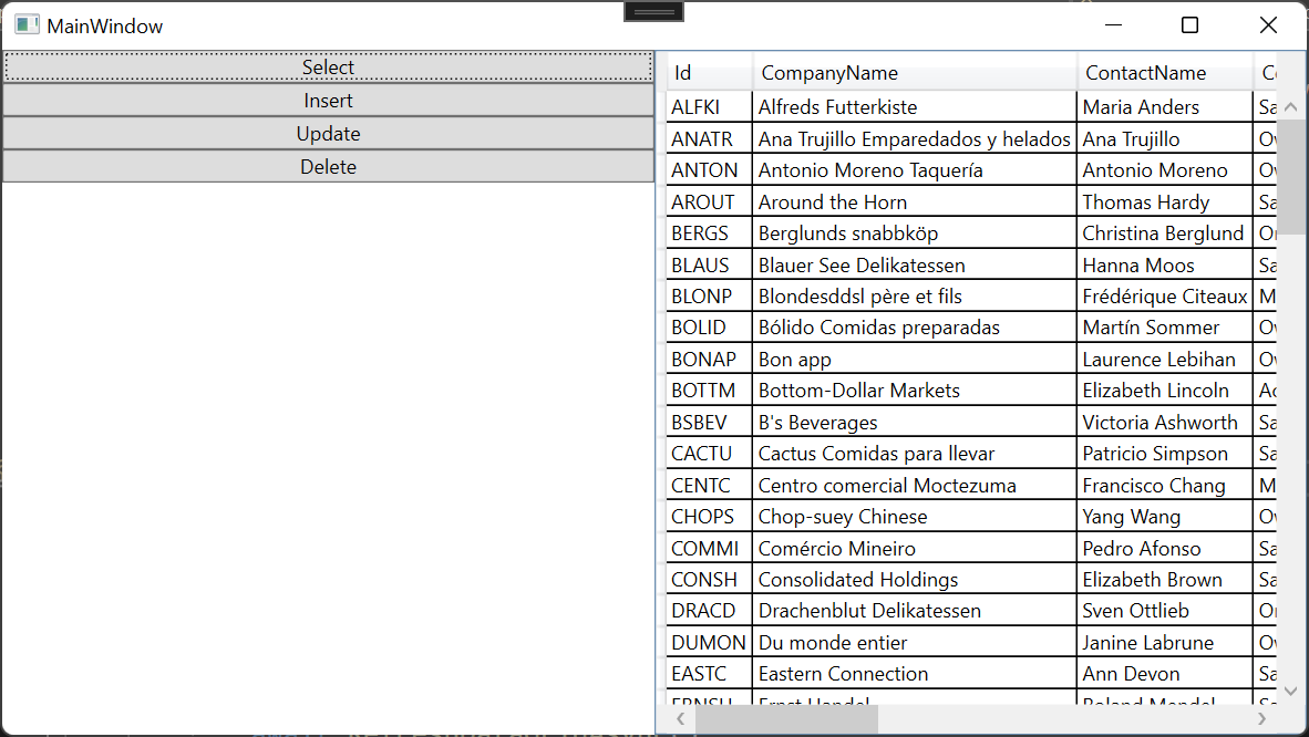 셈플에서는 Northwind_large.sqlite를 이용합니다. Customer.cs 클래스는 Customer 테이블의 데이터 이용하기 위해 만들었습니다.