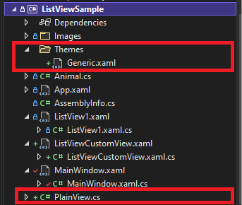 빨간 테두리 부분의 Themes/Generic.xaml과 PlainView.cs 파일이 추가됩니다.