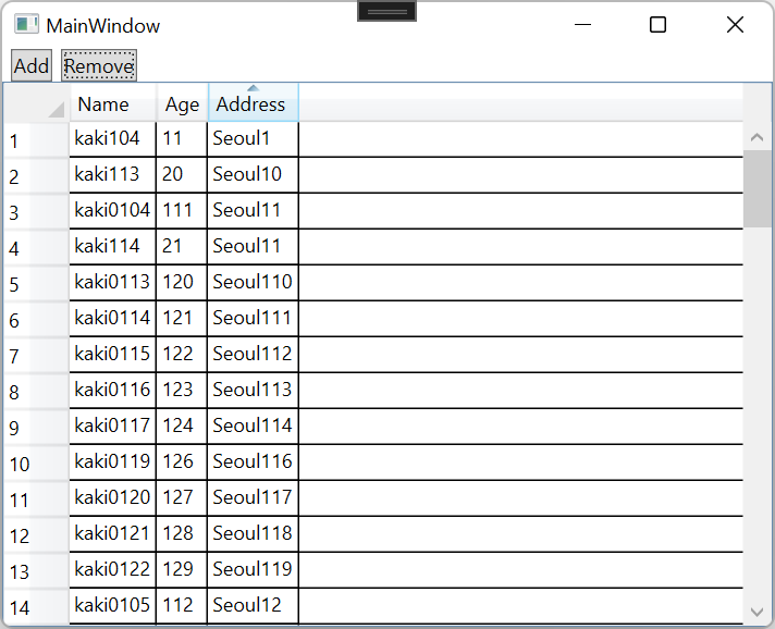 별도의 3rd party 컨트롤을 사용하지 않는 경우 DataGrid를 많이 사용하는데, RowNumber를 출력하는 방법을 찾아보니 MVVM pattern에서 사용하기 쉬운 방법에 대해서 설명되어 있는 것이 없는 것 같아서 간단하게 만들어 보았습니다.