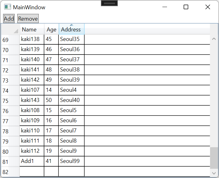 _persons.Add(new Person { Name = "Add1", Age = 41, Address = "Seoul99" });