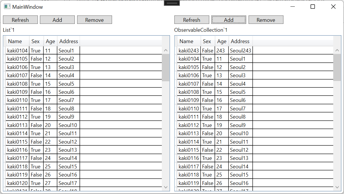 주의하실 부분은 만약 RightPeople에 List형 데이터를 한번이라도 넣어 버리면, 그 다음부터는 Add 버튼을 눌러서 실시간으로 추가를 해도 화면에 반영이 되지 않는다는 것입니다.