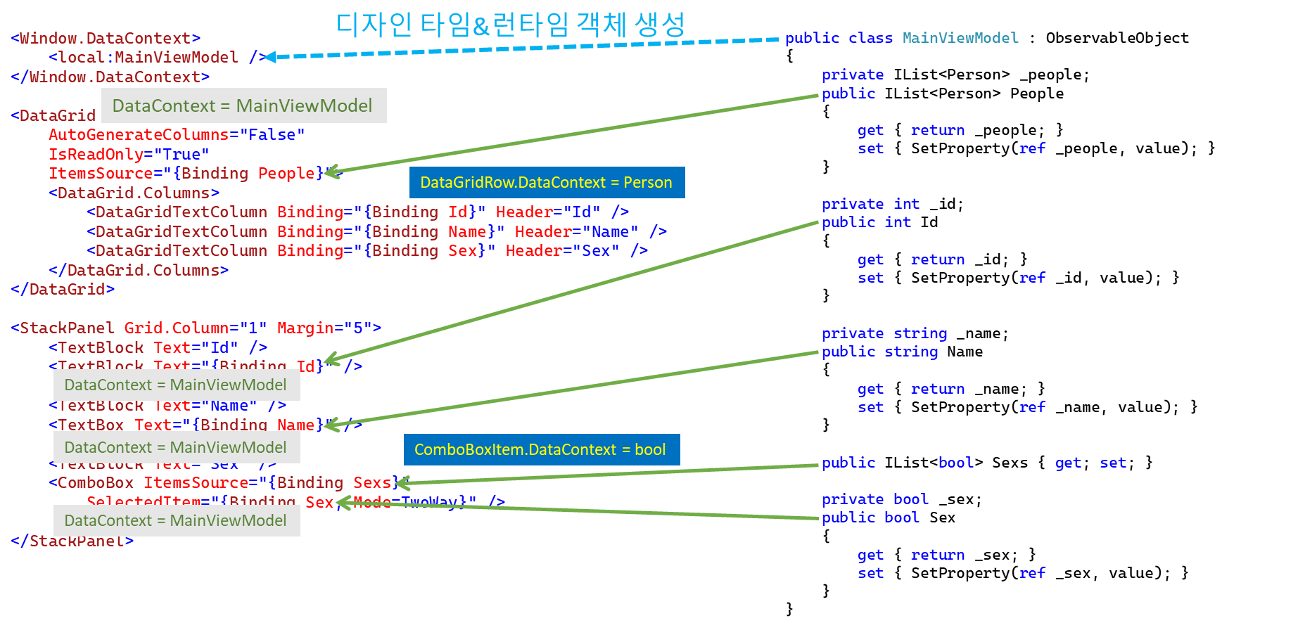 - DataGrid.DataContext는 Window.DataContext를 사용할 수 있습니다.