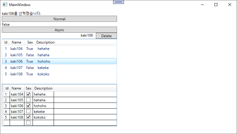 - OnSelectionChanged() 메서드에서 SelectedPerson에 선택된 Person 객체를 입력합니다.