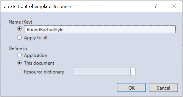 - 내부에서 사용하는 컬러 리소스는 ControlTemplate에서 접근할 수 있는 위치에 있어야 합니다.