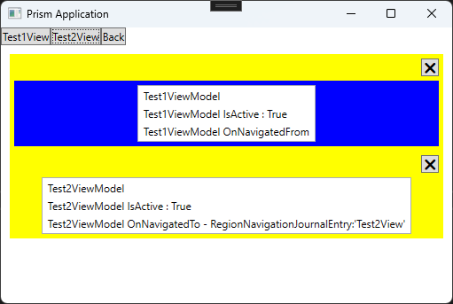 Region에 있는 View를 삭제하면 NotifyCollectionChangedAction.Remove 이벤트가 발생하고, 그 때 StackPanel에서 RegionBase와 Test2View를 삭제하게 됩니다.