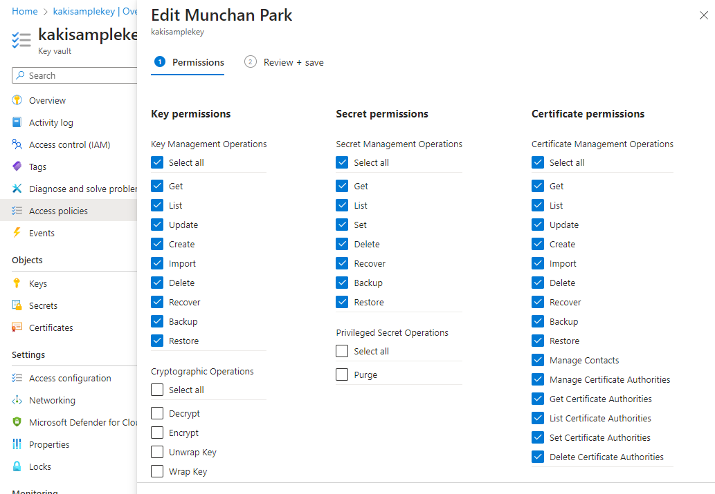그 아래 Privileged Key Operations 들도 필요할 것 같아서 모두 체크 합니다.